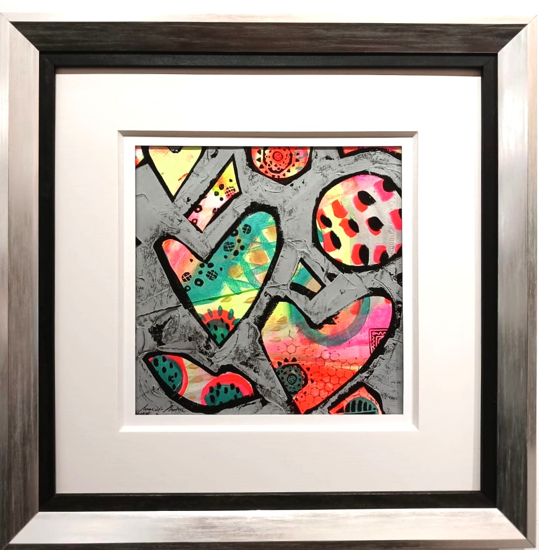 Título: All we need is love I Técnica: Xilografía Color Dimensiones: 48 x 48 cm Marco: Plateado + Negro Autor: Marcela Matus Año: 2026