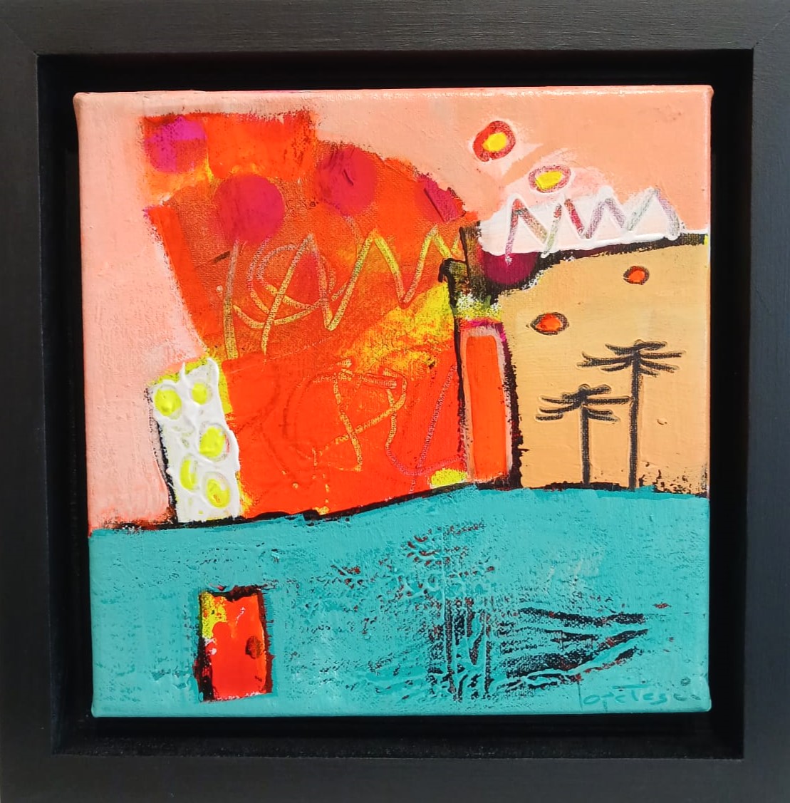 Título: Araucanía I Técnica: Mixta sobre tela Dimensiones: 25 x 25 cm Marco: Oregón Autor: Pablo Lopetegui Año: 2026