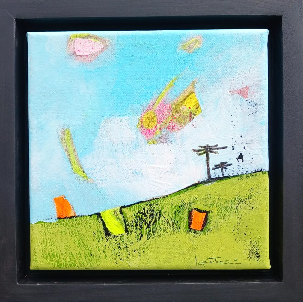 Titulo: I Técnica: Mixta sobre tela Dimensiones: 25 x 25 cm. Marco: Oregón – Color negro Autor: Pablo Lopetegui Año: 2025