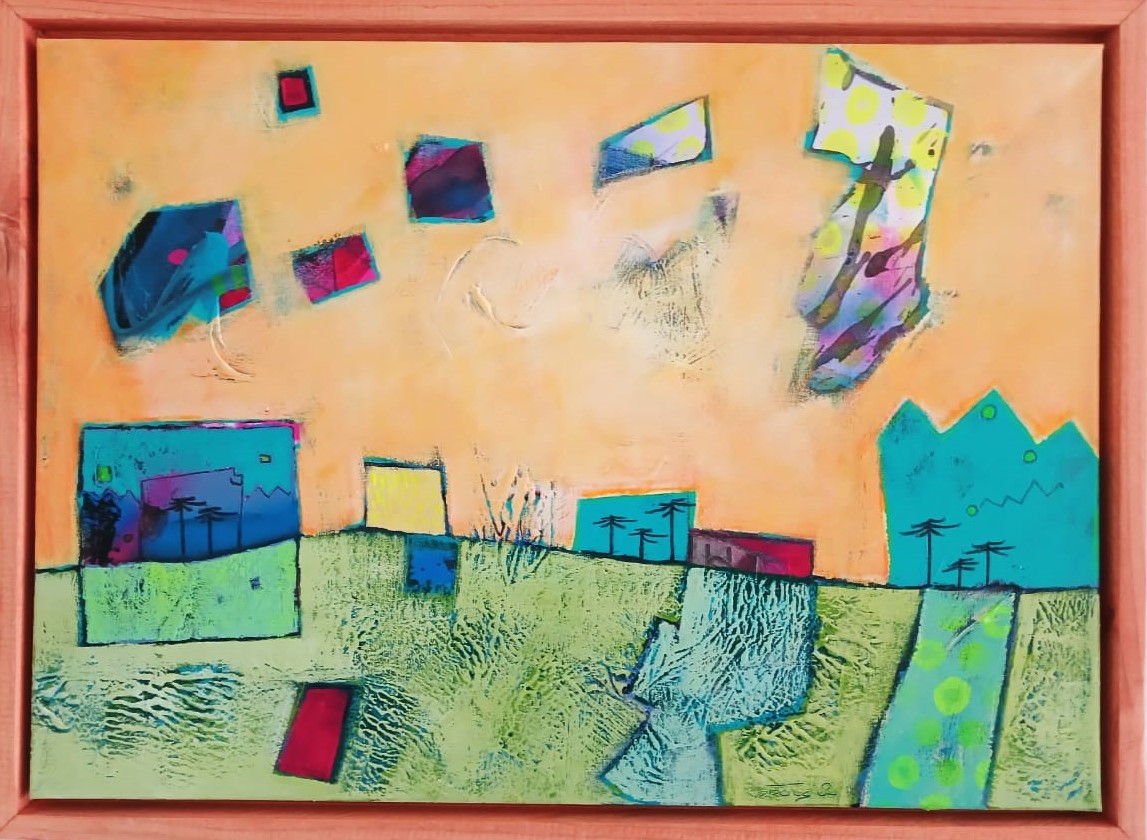Titulo: «Miradas al interior» Técnica: Mixta sobre tela Dimensiones: 75 x 55 cm. Marco: Oregón Autor: Pablo Lopetegui Año: 2025
