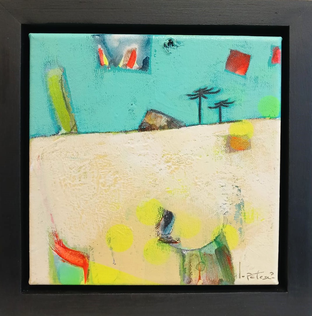 Título: Pehuen III Técnica: Mixta sobre tela Dimensiones: 25 x 25 cm Marco: Oregón Autor: Pablo Lopetegui Año: 2025